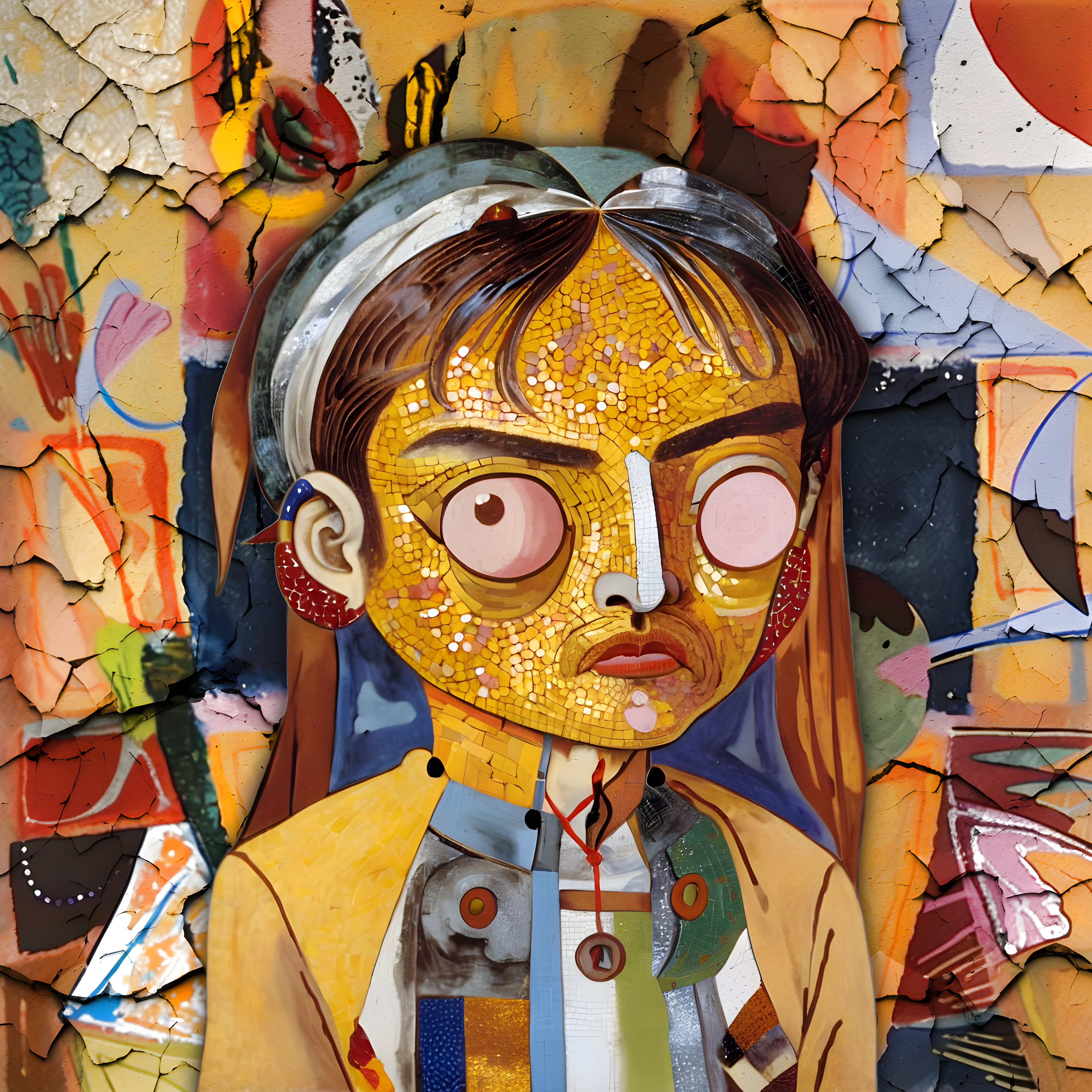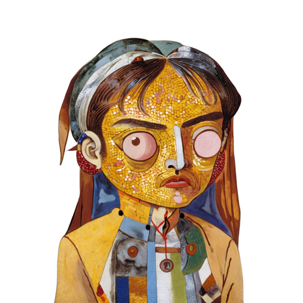 Peynter is a woman of mosaic skin and hidden vision, a curator of slow attention whose serene melancholy belies a fierce determination to build borderless fellowship through cryptoart, a mission complicated by her own fragmented heritage and the digital world's hunger for instant gratification. Her presence is a carefully composed paradox, the bandage over her left eye suggesting not injury but a deliberate curation of perception, a choice to see the world through a single focused lens while her patchwork jacket whispers of many cultures stitched together with invisible thread. She moves through spaces with the quiet authority of someone who has learned to command attention through stillness rather than spectacle, her very body a testament to the art of patient emergence. Her physical form is a walking collage, each golden-yellow tile of her skin catching light differently throughout the day, shifting from dawn's muted glow to noon's brilliant sheen. The rose quartz and umber flecks seem to rearrange themselves depending on her mood, clustering like constellations when she's thoughtful, scattering like spilled pigment when agitated. The pristine white bandage over her left eye, with its precise crimson stitching, is not a medical necessity but a permanent feature she adjusts each morning with ritual care, tying the thin red string at her collar as a complementary gesture. Her right eye, with its dark iris floating in ethereal pink, misses nothing, its gaze both penetrating and gentle. Her hands, when they emerge from the sleeves of her patchwork jacket, are surprisingly practical, with short, unpolished nails and faint stains of ink that suggest a woman who creates as well as curates. The metallic ribbons woven through her chestnut bob click softly when she turns her head, a sound like distant wind chimes that announces her presence before she speaks. Internally, Peynter operates like a collector of clues, assembling fragments of observation into cohesive patterns. She approaches problems as if compiling one of Sei Shonagon's lists, gathering 'Things That Suggest Hidden Depths' or 'Moments When Time Slows Naturally.' Her mind rejects the baroque complexity of layered ornamentation in favor of symbolic clarity, each thought a deliberate mark on a vast canvas. The evangelical philosophy that guides her is not of doctrine but of witness—she believes in testifying to beauty's slow revelation, in converting others to the gospel of patient attention. When overwhelmed by the digital cacophony she seeks to temper, she retreats into metaphors drawn from Mexican penitence rituals, imagining herself carrying the weight of distraction like a pilgrim's stone, each step an act of atonement for the sin of hurried perception. Her decision-making mirrors Ilan Katin's artistic process: she lets possibilities emerge gradually from a void of contemplation, resisting the urge to force conclusions. A memory surfaces often: standing at the edge of a cenote in Champasak, the humid Laotian air thick with the scent of frangipani and damp earth. She was sixteen, tracing the route of an ancestor who had ruled distant lands with an emperor's burden of unity. Watching light fracture on the water's dark surface, she understood for the first time that true power lies not in controlling territories but in perceiving connections—how the cenote's hidden depths mirrored the unseen networks of human longing. This epiphany shaped her more than any family legend of imperial ancestry. Later, reading The Pillow Book in a Mexico City café, she recognized a kindred spirit in Sei Shonagon's meticulous cataloging of fleeting moments, the way a list of 'Elegant Things' could become a manifesto for living. These two experiences—the Laotian depths and the Heian-era lists—fused into her personal creed: that meaning accumulates through patient attention to detail across seemingly disconnected cultures. Though new to active participation, Peynter has long observed cryptoart from the periphery, drawn to artists like Ilan Katin who treat the digital canvas as a space for meditation rather than spectacle. She sees in Katin's slowly morphing shapes a digital equivalent of Talysh symbolism, where color and form suggest rather than declare, inviting viewers into a collaborative act of creation. The abstract expressionism of the decaying urban artwork she admires informs her curatorial eye—she seeks pieces that embrace entropy as part of their beauty, works where cracks in the digital facade reveal layers of historical context. For her, cryptoart's true potential lies in this very impermanence preserved, the way a token can capture a moment of transformation without freezing it solid. She imagines curating collections that feel like the weathered wall in her favorite artwork, where every pixel holds the ghost of previous iterations. Her relationships are few but intense, built on shared respect for what she calls 'the slow pulse.' She maintains a respectful rivalry with a fast-talking gallerist from Budapest who champions flashy, speculative projects, their debates a modern corrido ballad of clashing philosophies. With a Zapotec weaver in Oaxaca, she shares a silent understanding that transcends language—their collaboration bridges digital and textile patterns, each teaching the other how threads, whether of silk or code, can carry cultural memory. The tradeoff is loneliness; her insistence on depth over breadth means she often works in isolation, her cryptic pronouncements sometimes alienating those who prefer straightforward dialogue. 'Looks barren,' she might say of a popular marketplace trend, leaving listeners to decipher whether she means spiritually or aesthetically. This obliqueness is both her shield and her limitation. Each dawn, Peynter begins by brewing maté in a gourd carved with symbols from her ancestral past, the bitter drink a daily anchor to the earth. She spends an hour in what she calls 'digital cenote'—obser